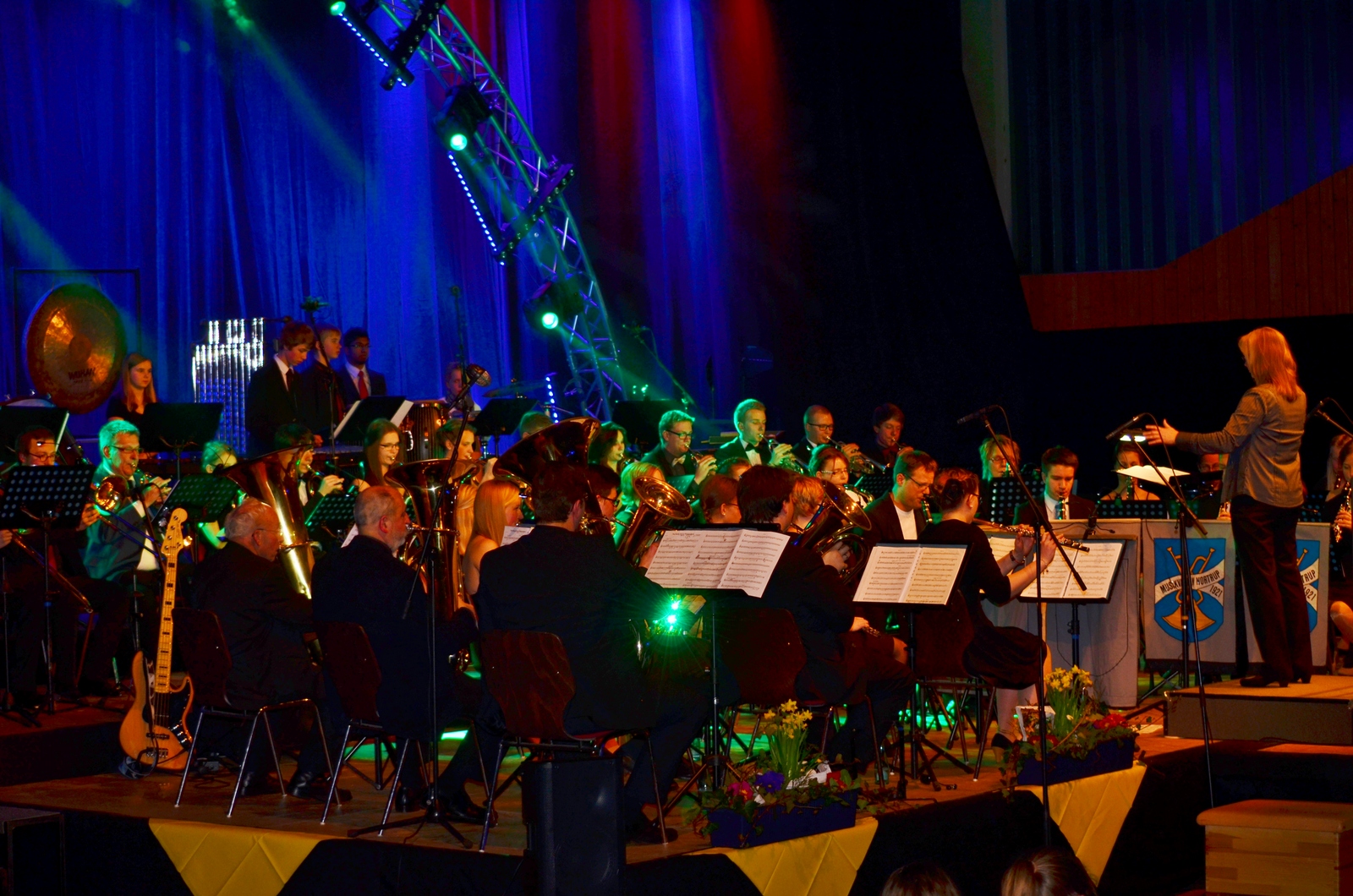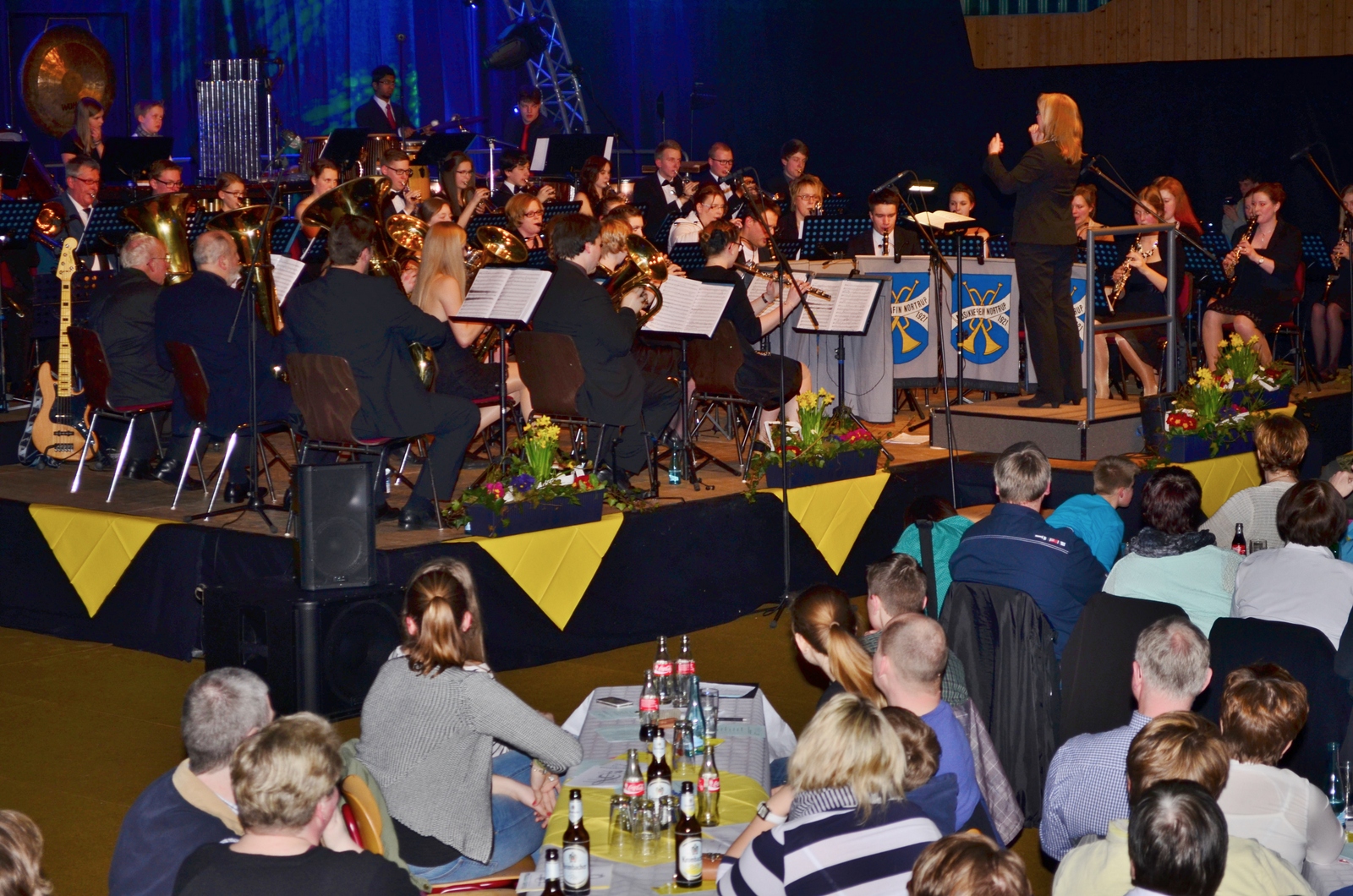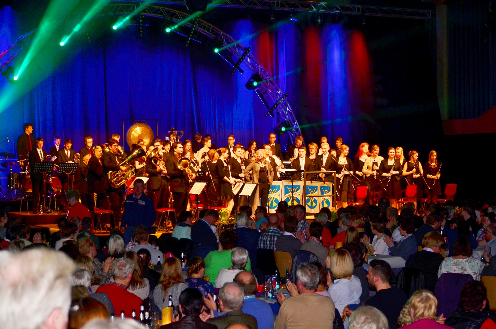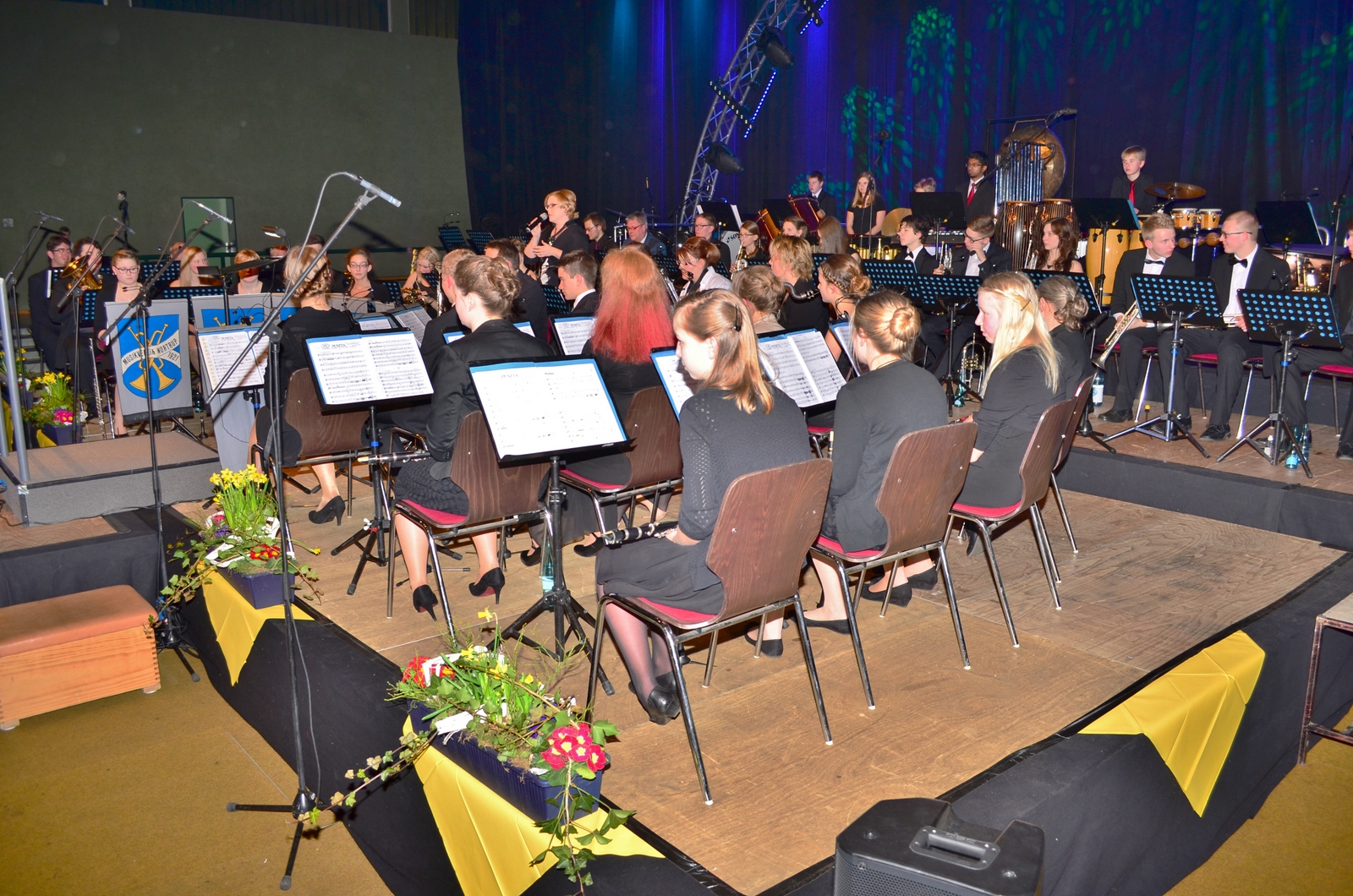 In einen stimmungsvollen Konzertsaal hatten mehrere Dutzend Musiker und eine Reihe freiwilliger Helfer unter der Regie von Karl-Heinz Frese und Marc Austermühle die Sporthalle umgestaltet. Ein Kamerateam übertrug Livebildern auf eine Riesenleinwand. Stimmungsvolle Bilderzählungen untermalten das musikalisch Dargebotene auf eindrucksvolle Weise.