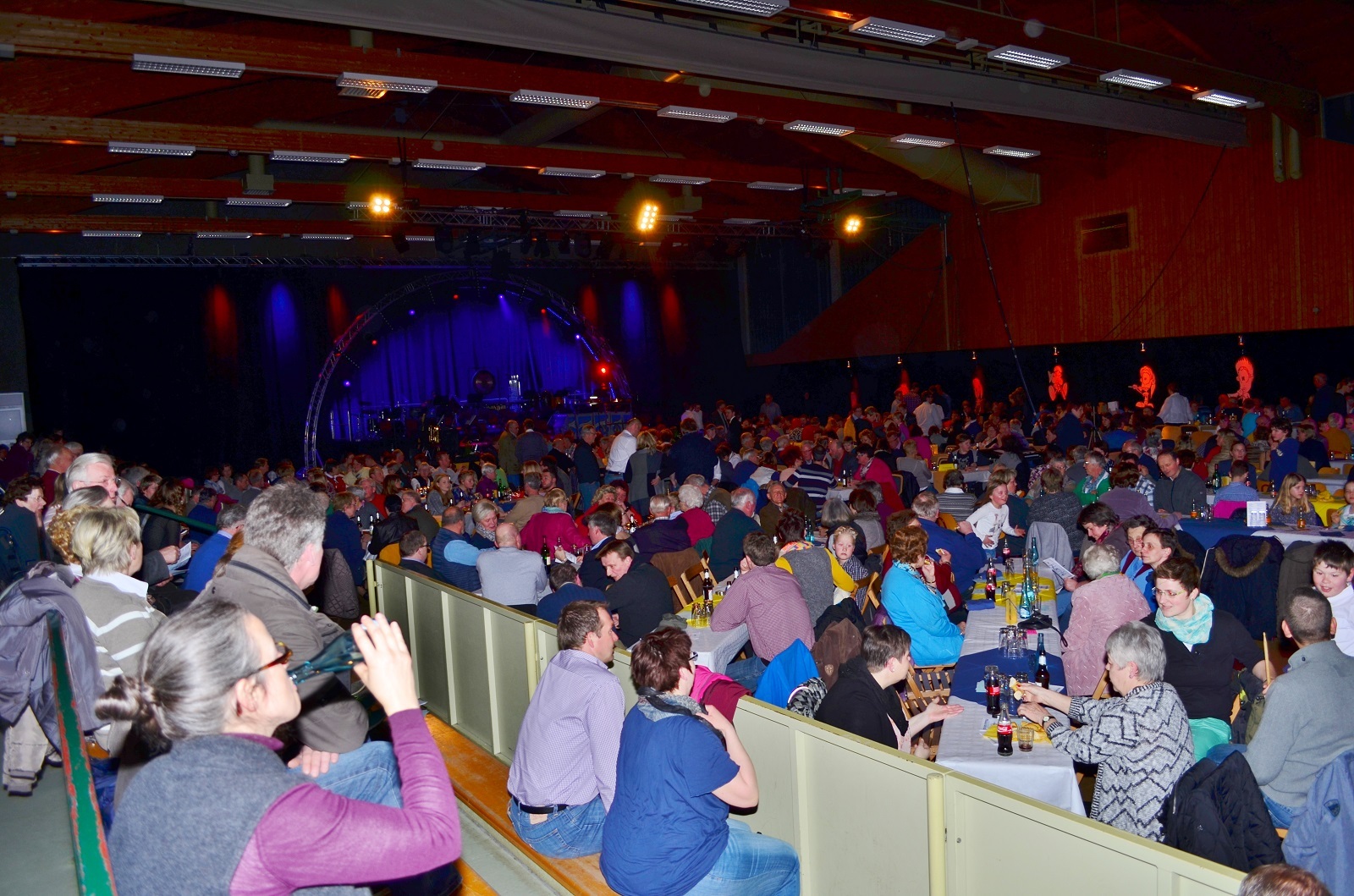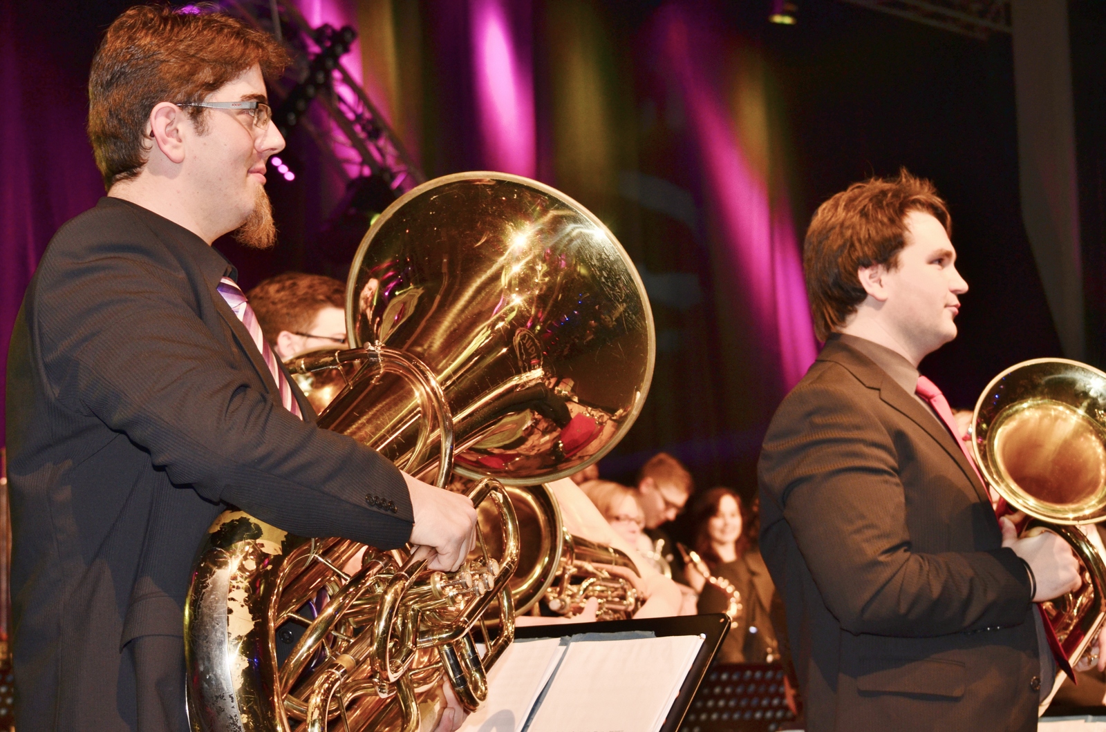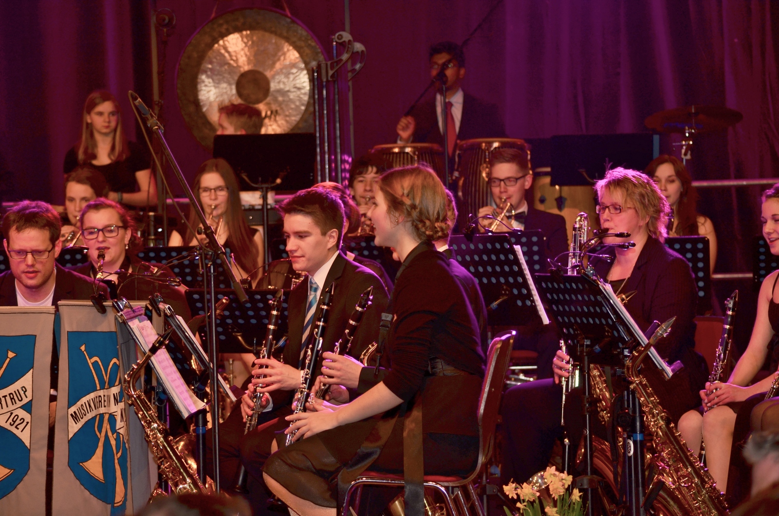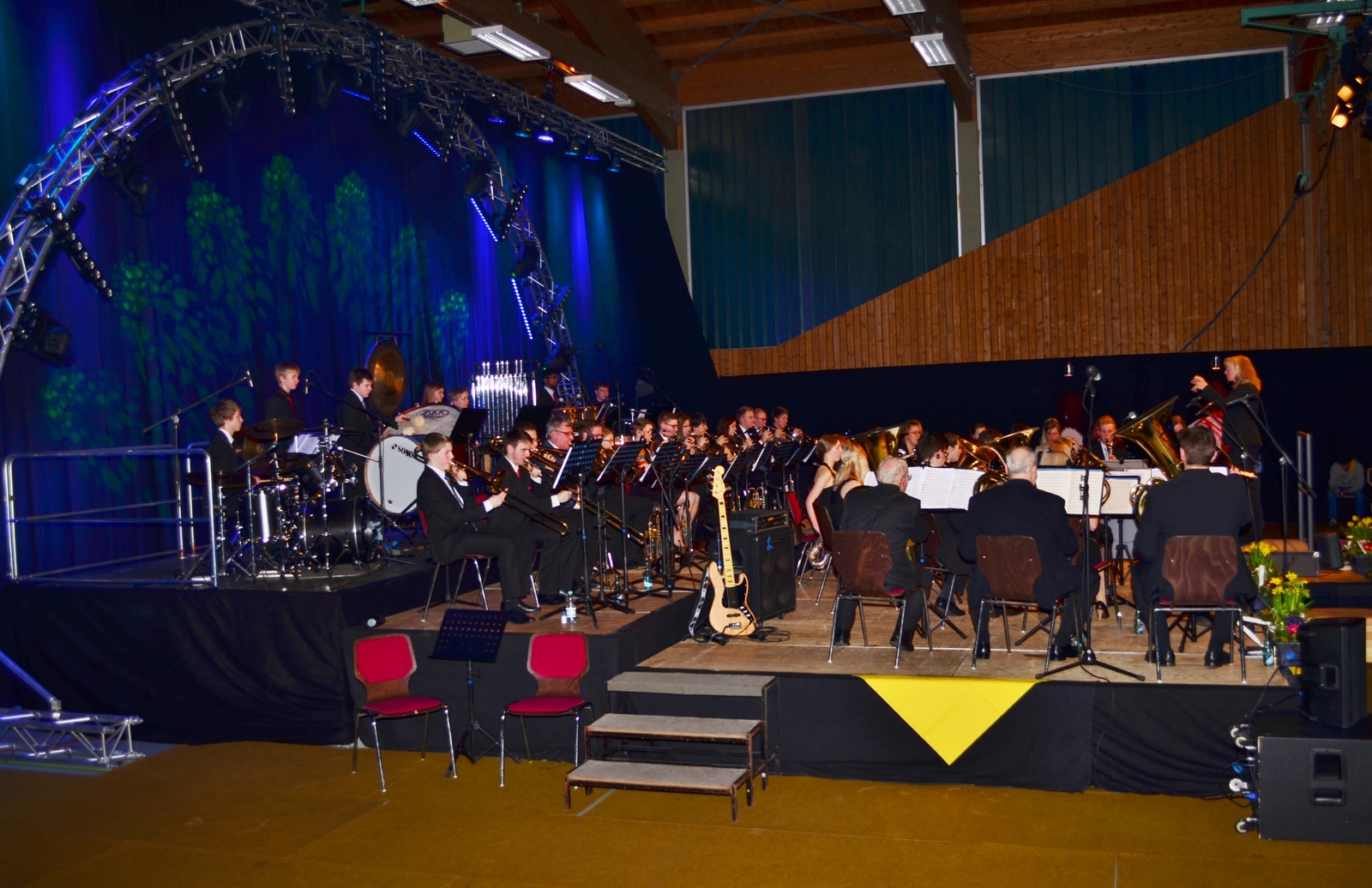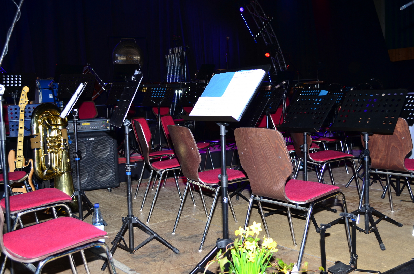 In einen stimmungsvollen Konzertsaal hatten mehrere Dutzend Musiker und eine Reihe freiwilliger Helfer unter der Regie von Karl-Heinz Frese und Marc Austermühle die Sporthalle umgestaltet. Ein Kamerateam übertrug Livebildern auf eine Riesenleinwand. Stimmungsvolle Bilderzählungen untermalten das musikalisch Dargebotene auf eindrucksvolle Weise.